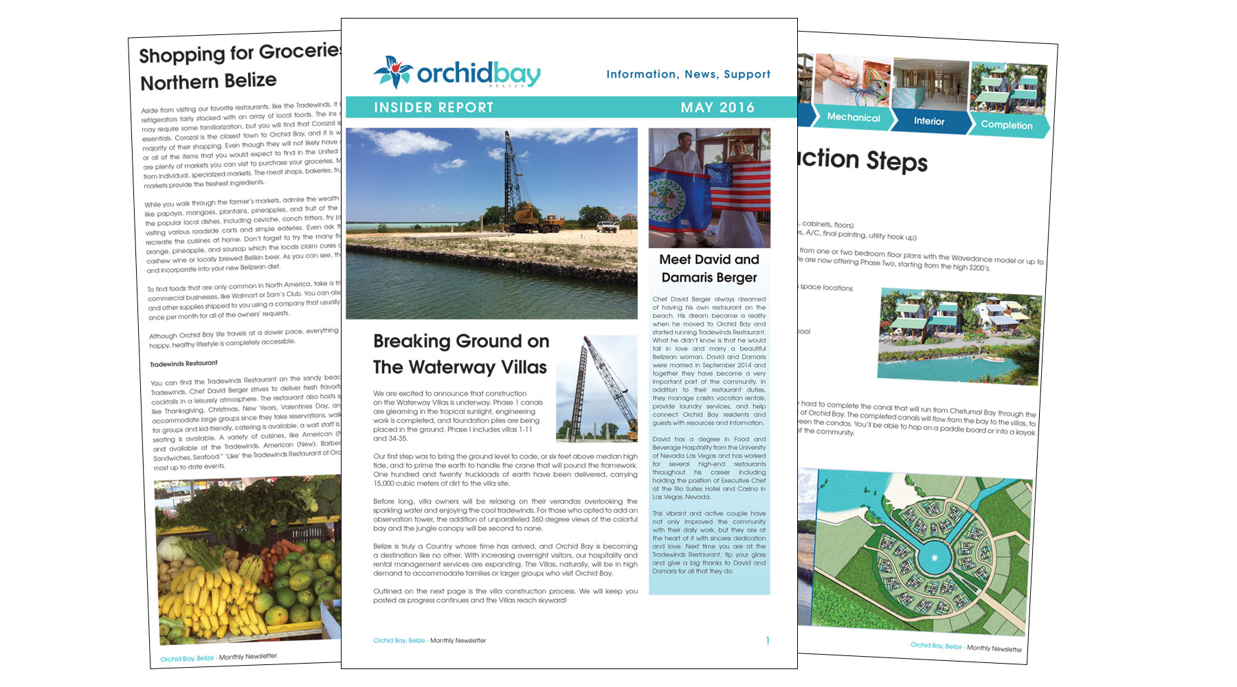 One of my monthly deliverables was a newsletter that went out to residents and prospective residents of Orchid Bay. It included important updates and information about local news, construction, everyday life, and the expat community.